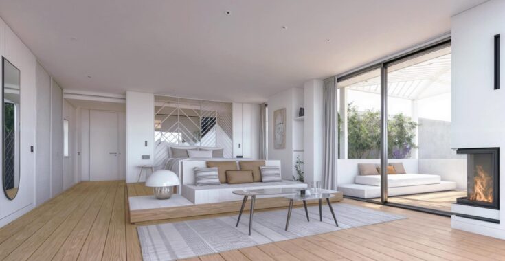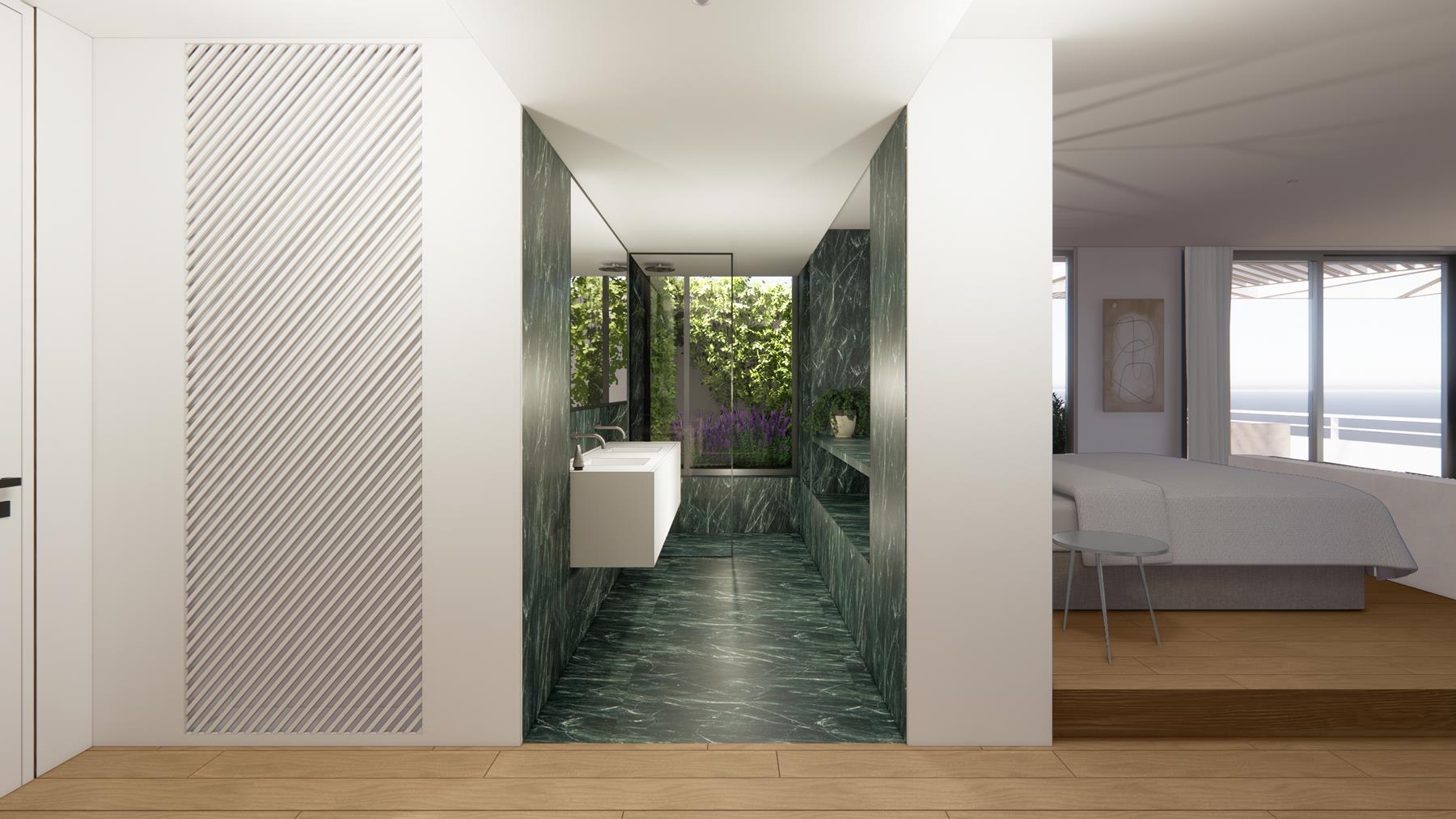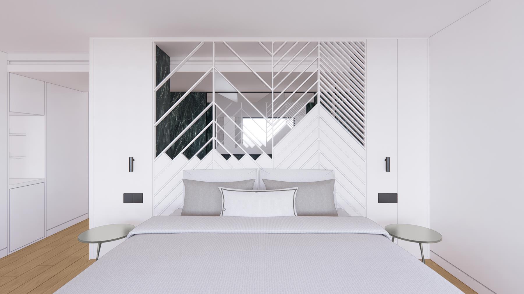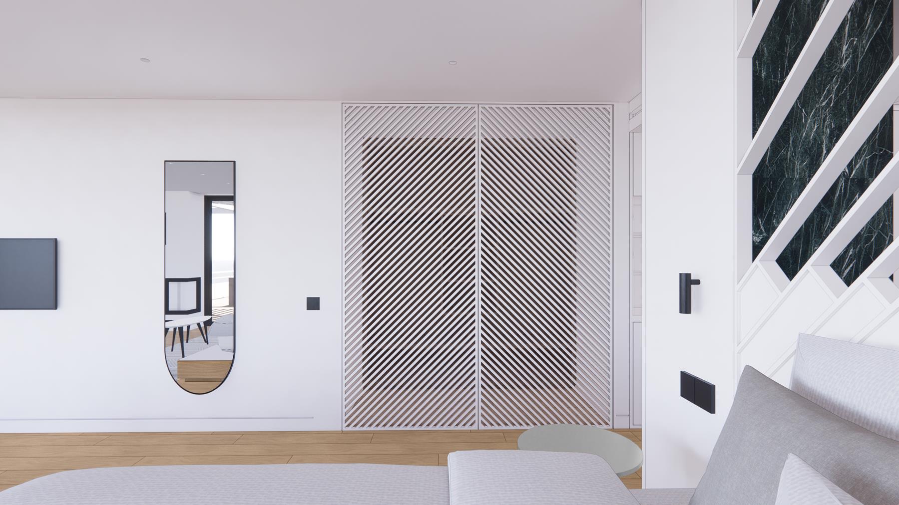Η Junior Sky Suite προσφέρει μια εκλεπτυσμένη εμπειρία διαμονής στο roof level του ξενοδοχείου, με έμφαση στον χώρο, το φως και την πανοραμική θέα.